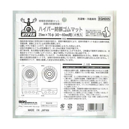 ハイパー防振ゴムマット 洗濯機・冷蔵庫用 ブラック 高さ25×70φmm 4枚入 EGH−005