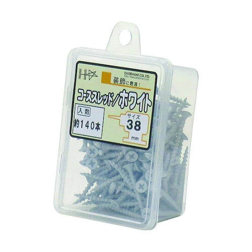 耐食性に優れたカラーラスパート処理を施しています。木材のカラーに合わせて使用できます。ねじ全体に色がついたタイプです。 |