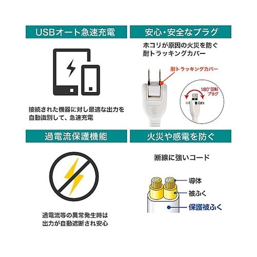 スマートフォンを2台同時充電可能!(USBポート)iPhone、iPad、Androidスマートフォン/タブレットを充電可能です。接続された機器(iPhone、iPad、Android等)に対し、最適