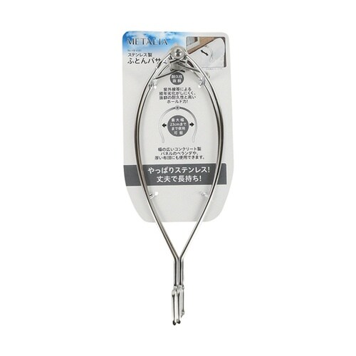 ステンレス製で丈夫で長持ち。ふとんをしっかりキャッチでき、強いバネでしっかり固定。幅の広いコンクリート製パネルのベランダや、厚い布団にも使えます。 |