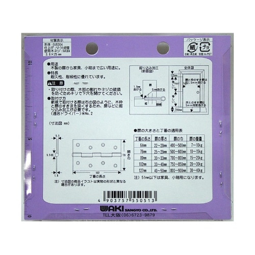 耐久性、耐候性に優れています。木製の扉から家具、小箱まで広い用途に。取り付けの際、木部の割れやネジの破損を防ぐためキリで下穴を開けてください。
