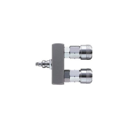 高圧空気配管(3.0MPa)の接続、分離に。高圧用コンプレッサに対応したエアソケットです。1本の配管から2本の配管へ分岐できます。 |