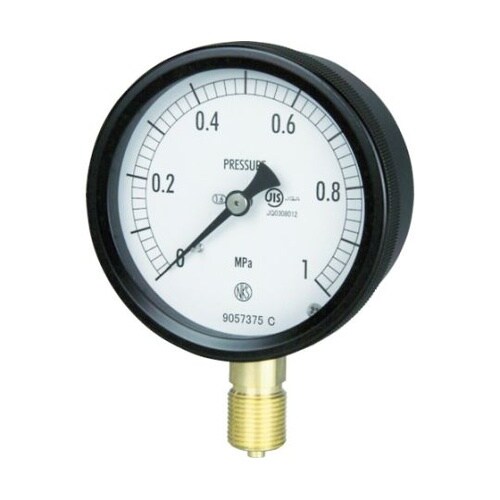 密閉ケースの採用により、雨露などの条件下でも使用できます。ブルドン管の弾性変形(動き)を指針に伝える構造の圧力計で、構造が簡単なため取り扱いが容易です。JIS B 7505−1規格品です。 |