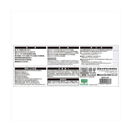 コンクリート・モルタル面と金属、木材、タイル、プラスチック、従来接着のしにくかったステンレスやアルミを強力接着。屋外でも使え、熱・水・ショックに強い弾性接着剤です。無溶剤タイプなので臭いや火災の危険も |