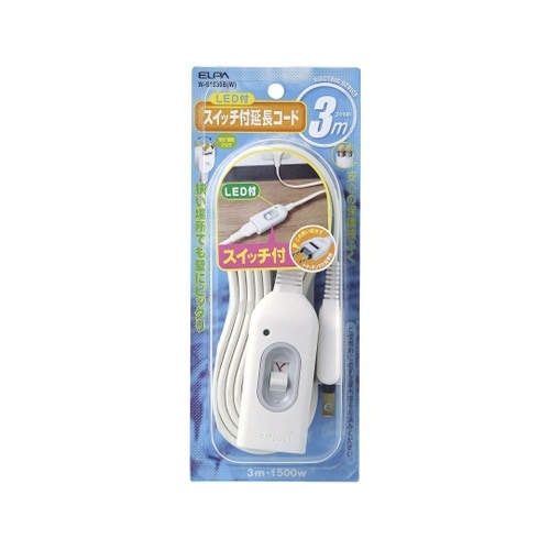 朝日電器 スイッチ付延長コード 3m W−S1030B(W) A04F-1874
