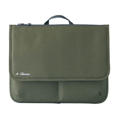 デジタルガジェットやノートなどの収納、持ち運びに便利なハンドル付き。フラップから、ファスナーから2通りの方法で中身にアクセスできます!約14インチの薄型ノートPCが入ります。テレワークにオススメ!