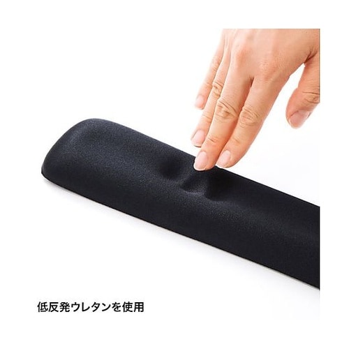 低反発ウレタンを使用したフルキーボード対応のリストレスト。通常のウレタンフォームに比べ、反発弾性が非常に少なく、ゆくっり沈み込んでゆっくり戻る特性があります。粘性のある触感で、動きに合わせて変形するの |
