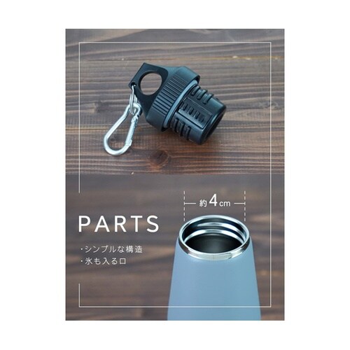 リュックに掛けられて持ち運びできるカラビナ付。キズを気にせず使える外面粉体塗装。真空断熱構造で飲み物の温度が長持ち。 |