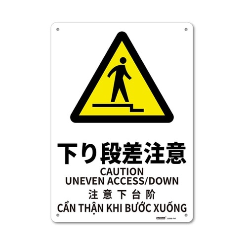 安全標識板(多言語表記・HIPS) 下り段差注意 254×356mm J2688−PM