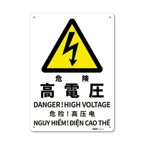 安全標識板(多言語表記・HIPS) 危険高電圧 254×356mm J2687−PM