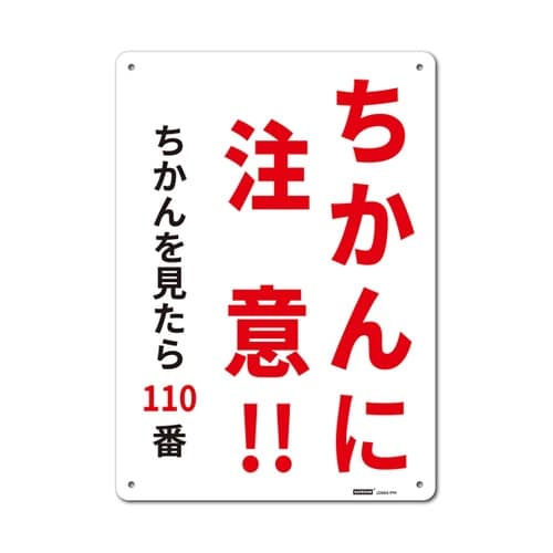 セーフラン安全用品 一般表示板 ちかんに注意!! 254×356mm J2664−PM A04F-2458
