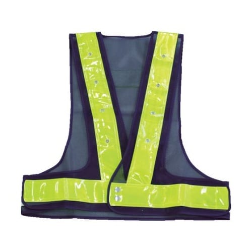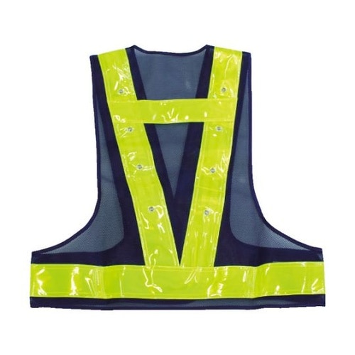 赤青交互点滅LED付安全ベスト ネイビー/イエロー反射 TLYE−RB