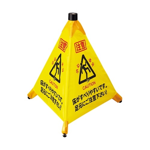 日本語・英語・中国語・韓国語の4カ国語を3面に表示しています。軽量・コンパクトで持ち運びにも便利な折りたたみ式のサインスタンドです。 |