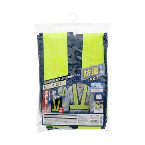 工事・建築作業、夜間作業・夜間警備などに防滴仕様で雨天にも強い赤色LED48個で視認性抜群!点滅・点灯切替式幅広7cm反射テープ使用、破れにくいダブルポリエステルメッシュ面ファスナーでウエストサイズ調 |