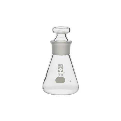口元にガラス製の共通すり合わせ共栓が付属した三角フラスコです。 |