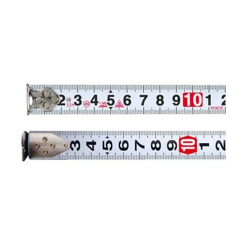 裏面は高さ測定しやすい縦目盛です。テープ引き込み時に減速が可能なダブルブレーキ機構付です。あらゆる寸法測定に。 |