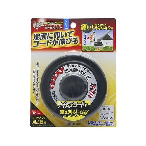 地面に叩いてコードが伸びる薄い!短く刈れる!地面から約3cm日本製壁・フェンスのキワ刈り・雑草刈りにナイロンコードで草を刈る |