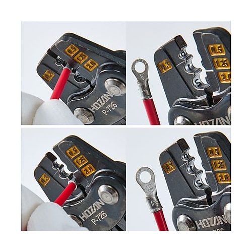 小型端子にも対応したコンパクトタイプ成形確認機構付で3つの適応サイズを持った圧着工具。 |