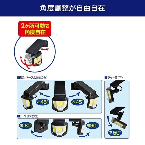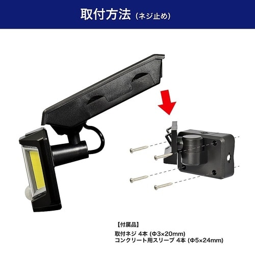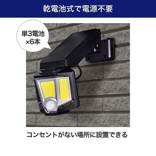 暗闇でセンサーが人や車の動きを検知して自動点灯本体側面にもLEDを搭載しているので広範囲を照射乾電池式なのでコンセントがない場所に設置できて、電気代もかかりません。屋外に設置できる防水仕様(IP65 |