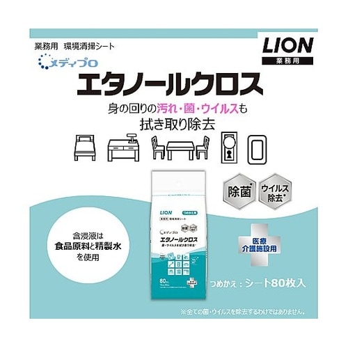 人の手が触れるドアノブやベッド周り(柵やテーブルなど)や看護・介護用品などの硬質表面をサッと除菌清掃できます。含浸液は食品添加物を使用しています。 |