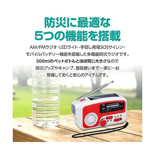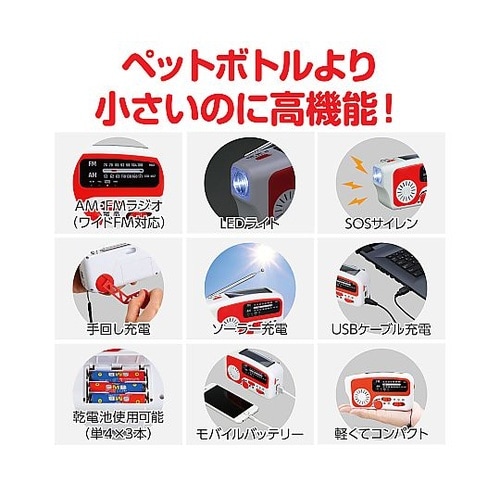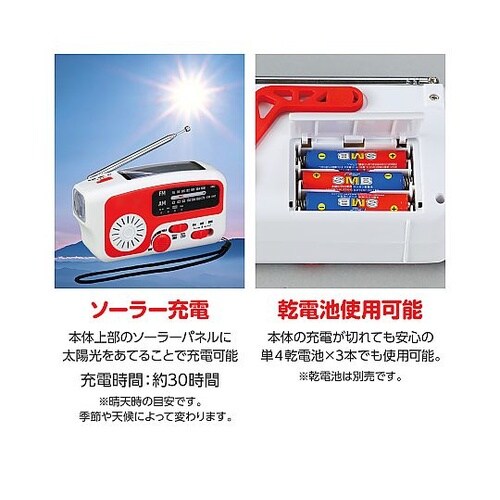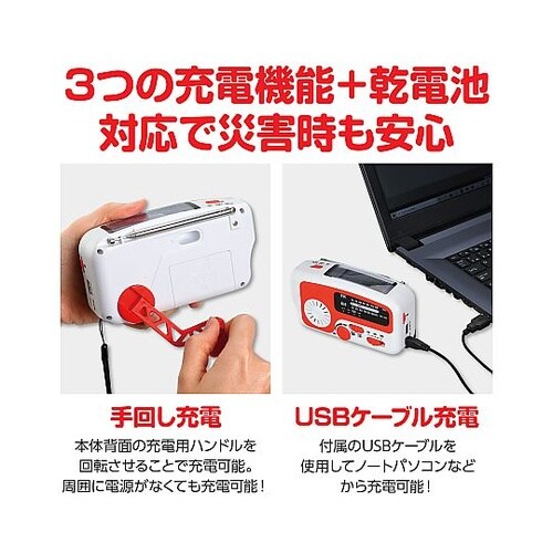 防災に適した5つの機能搭載3つの充電機能で災害時も安心単4アルカリ乾電池3本使用(別売) |