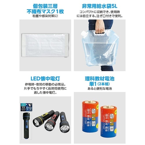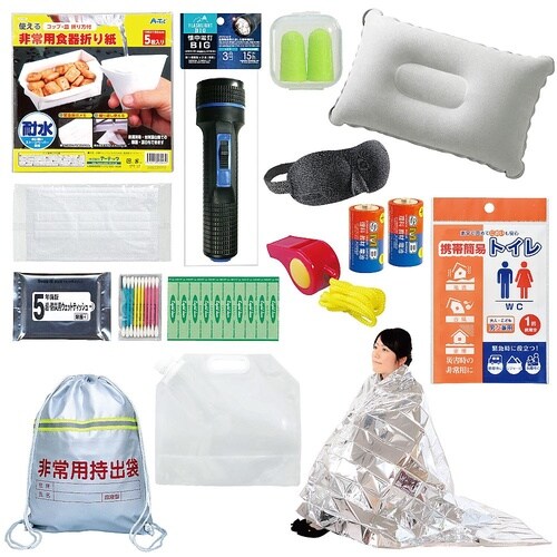 防災士が監修した防災セット!枕入りで一泊可能なセットです。難燃性のナップサックタイプなので、万一の火事の際にも荷物を守ります。 |