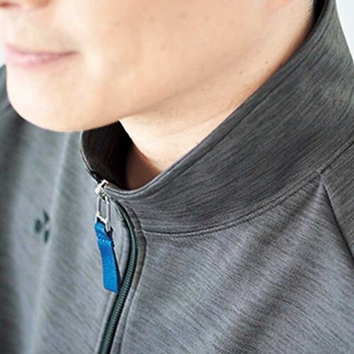 衿先はリハビリ時の首元の窮屈感を解消するライン。右胸にブランドロゴの刺しゅう入り。