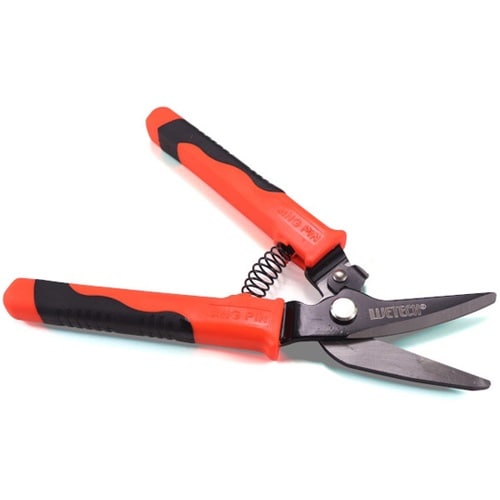 カーブして刃先が見やすく切りやすい刃の入りに角度があるから切りやすい細かいギザ刃で切れ味アップバネが開閉を楽にするから疲れにくい軍手でも滑りにくいラバー付グリップ安全ストッパー付き銅板、トタン板、ブリ |