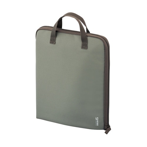 L字に自立するポーチです。立てて使えるので外出先や自宅での使用にも場所を取りません。収納物の画面などを守る保護フラップ、ノートPCが入るポケット付きです。よく使うペンなどを引っかけられるベルト付きです |