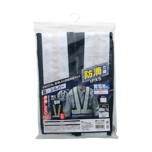 工事・建築作業、夜間作業・夜間警備などに防滴仕様で雨天にも強い赤色LED48個で視認性抜群!点滅・点灯切替式幅広7cm反射テープ使用、破れにくいダブルポリエステルメッシュ面ファスナーでウエストサイズ調 |