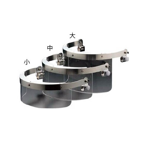 平面シールドを短くして、目の周囲を中心に保護します。M−1金具付液体飛沫からの防御に。MP型ヘルメット対応の取付金具です。(その他のタイプもあります。) |