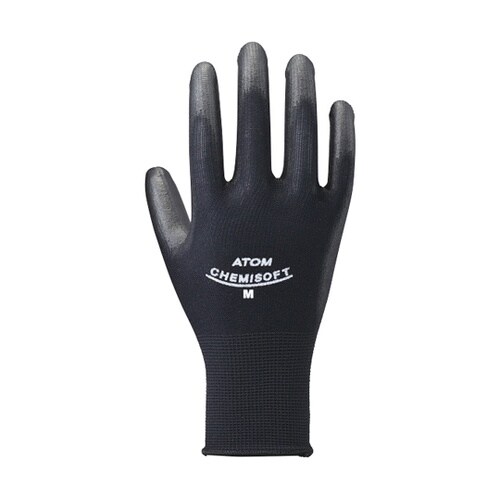 フィット感、通気性に優れたポリウレタンコーティングの背抜き手袋。黒色コーティングでイヤな汚れがきになりません。 |
