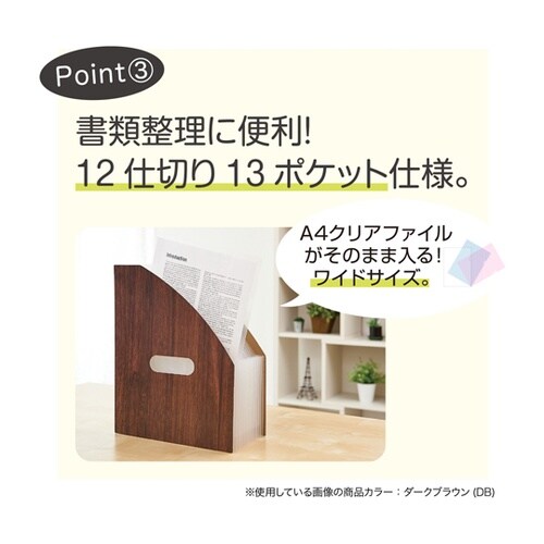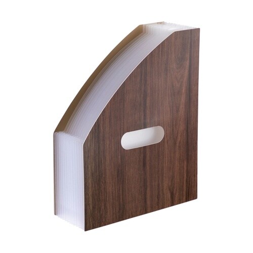 書類の収納量に応じて伸縮!機能的でインテリアにもなじむ木目調の収納スタンド。温かみのある空間を演出する木目調の収納スタンド▼書類の収納量に合わせて伸縮する、蛇腹式ポケット。家庭やオフィスの書類整理に便 |