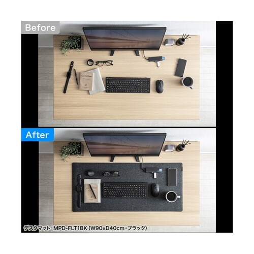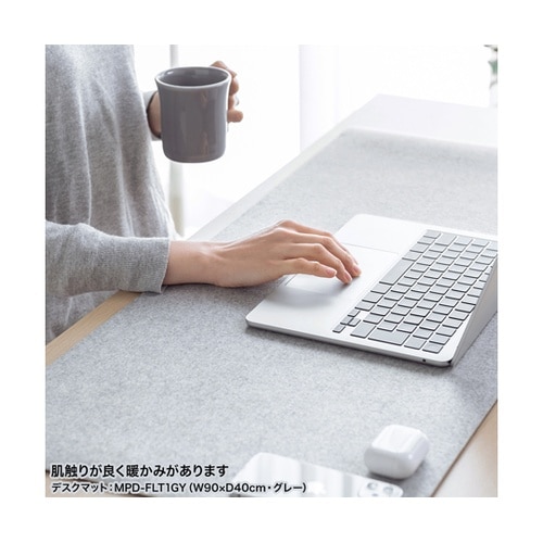 背面は滑り止め素材で机の上で滑りにくく快適に使用できます。マウスパッドの延長としても使用できます。簡単に巻けるので持ち運びや収納に便利です。600×300mmです。 |