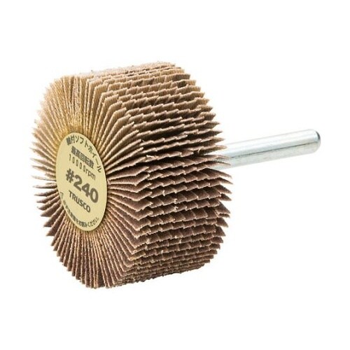 一般金属用です。研磨布に細かくスリットしてあるため、細かい部所の研磨はもちろん、凹凸面研磨に適しています。「自生作用」により、目づまりしません。ソフトタッチの研磨ができます。軸付フラップの持つ特性を保 |