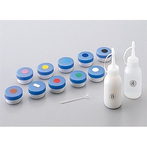 陶器の上から塗る絵具です。手がよごれず、顔料の調整が手軽にでき、水でうすめて使うこともできます。但し、赤と他の絵具の混色はさけてください。 |