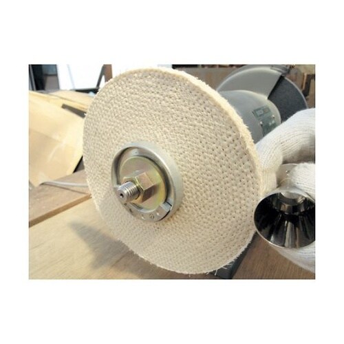 白棒を付けて、鉄鋼・ステンレスの下地研磨・中間研磨ができるサイザル(麻+綿布)バフです。加工傷、生地目の除去、中間研磨。使用工具:両頭グラインダー、バフグラインダー、ストレートグラインダー。 |