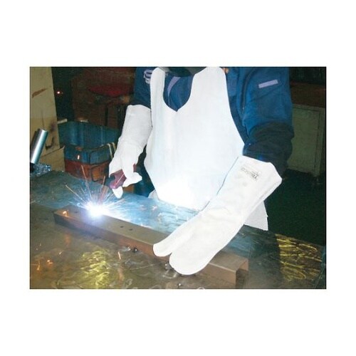 厚手牛床革を使用し耐熱性、耐久性に優れています。袖部が長く、前腕部まで保護します。溶接、溶断作業に。 |