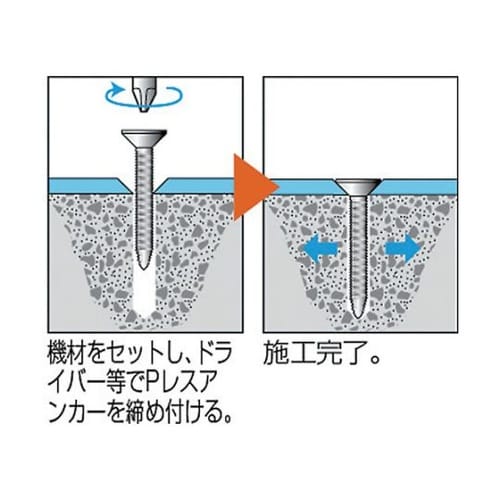 プラグ不要、下穴は小径で済みます。高く鋭いねじ山と低いねじ山の両機構でしっかり固着します。プラグ不要のため、穿孔径は小径で済みます。高いねじ山と低いねじ山の両機構で相手材にしっかり固着します。コンクリ |