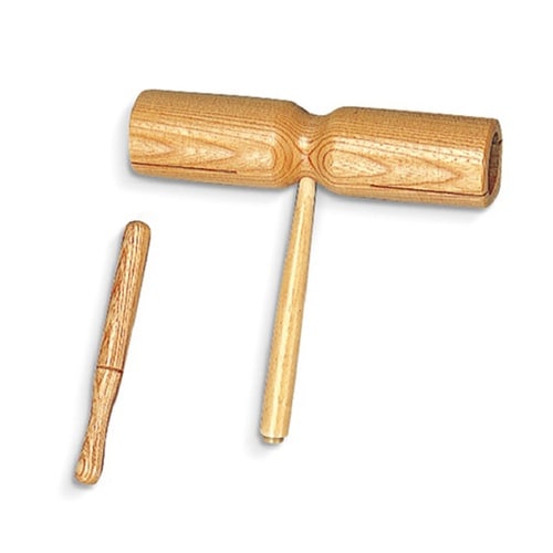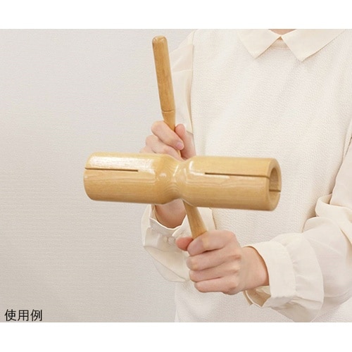 左右で音程が異なるので叩くと「カンコンカンコン」と軽快なリズムを刻む打楽器。 |