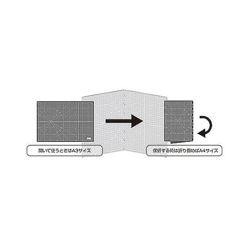 広げるとA3、折り畳めばほぼA4のマットは使い勝手がよく、持ち運びに便利なサイズです。裏面には滑り止め付きで、作業中にマットが滑りにくく、快適に作業が行えます。 |