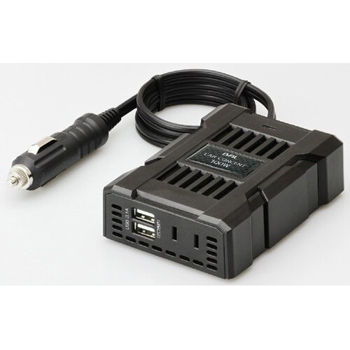 お車のアクセサリーソケットの電源(DC12V)を家庭用電源(AC100V)やUSB電源(DC5V)に変換しスマートフォンやタブレットPCへ電源供給ができます。家庭用電源とUSB電源を同時に使用すること |