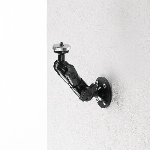 壁にカメラを設置できるカメラマウントです。オフィスや家庭の壁、などに取り付けできます。カメラの他、1/4インチサイズのネジ穴のある機器などを取り付けできます。2つの関節を調整して自由な位置に止めること |