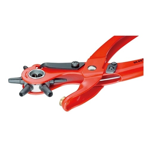 皮革・繊維・プラスチック素材の穴あけにヘッドを回転させることで、穴を6種類のサイズから選択することができます。(2.0/2.5/3.0/3.5/4.0/5.0mm)オープンスプリングとロックレバー付き |