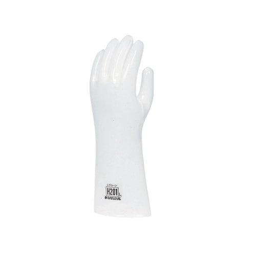 特定溶剤に耐性のあるシリコーンを使用した耐溶剤手袋です。使用可能溶剤:DMF(ジメチルホルムアミド)、NMP(N−メチルピロリドン)、ニトロベンゼンなど。手に張り付きにくい裏地付きで、裏側は手洗い可能 |