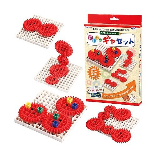 ギヤをくるくるまわして、いろんな問題にチャレンジしよう!ヨコにもタテにもつなげられる! |