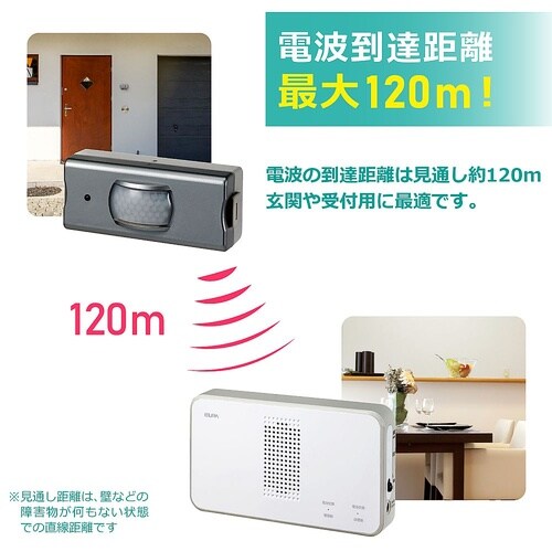 配線が不要なワイヤレスタイプなので設置が簡単!用途に合わせて送信器・受信器の増設も可能です。(1台の受信器に対して8台までの送信器を登録して使用できます。)送信器1台に対して受信器は何台でも増設するこ