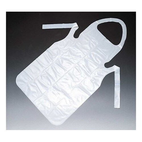 使い捨てタイプのPE製胸前掛フックに引っかけて保管可能 |