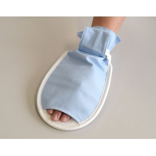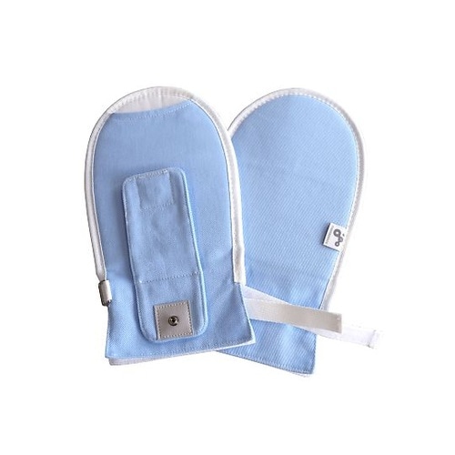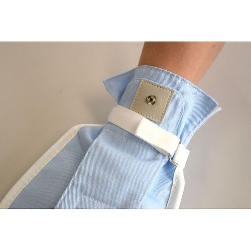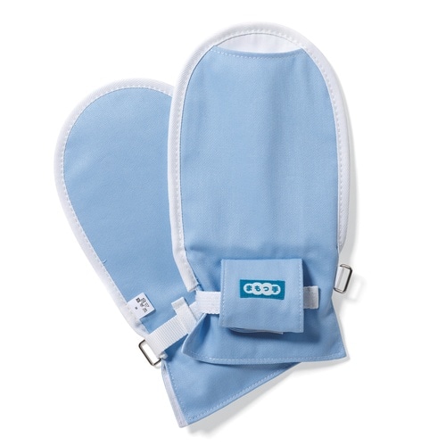 指先開閉タイプで、手袋を装着したまま手の観察が可能です。ご本人には開けにくいプッシュボタンを採用し、ボタンをカバーで覆っていますので安心してご使用できます。マジックベルトで簡単に調節可能です。 |