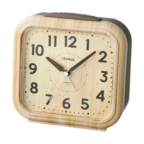 インテリアとしてもおススメの木目調塗装の見やすい目覚まし時計です。秒針は滑らかに動く連続秒針で針の進む音が気になりません。暗い場所でも見やすいライト機能付き、電子音アラームはスヌーズ機能付きです。 |